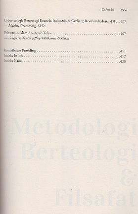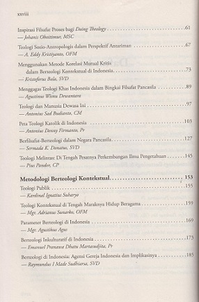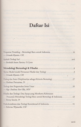 Merupakan Prosiding tentang Mencari metodologi berteologi baru untuk Indonesia dari para penggiat berteologi Indonesia dalam rangka launching program doktor teologi di STFT Widya Sasana. Aneka tulisannya dimaksudkan untuk memantik entusiasme aktivitas penelitian dan pengembangan model-model berteologi baru.